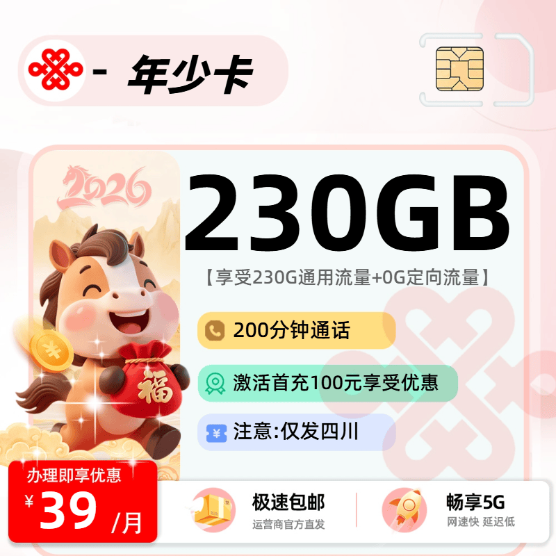 39元190G通用+200分钟